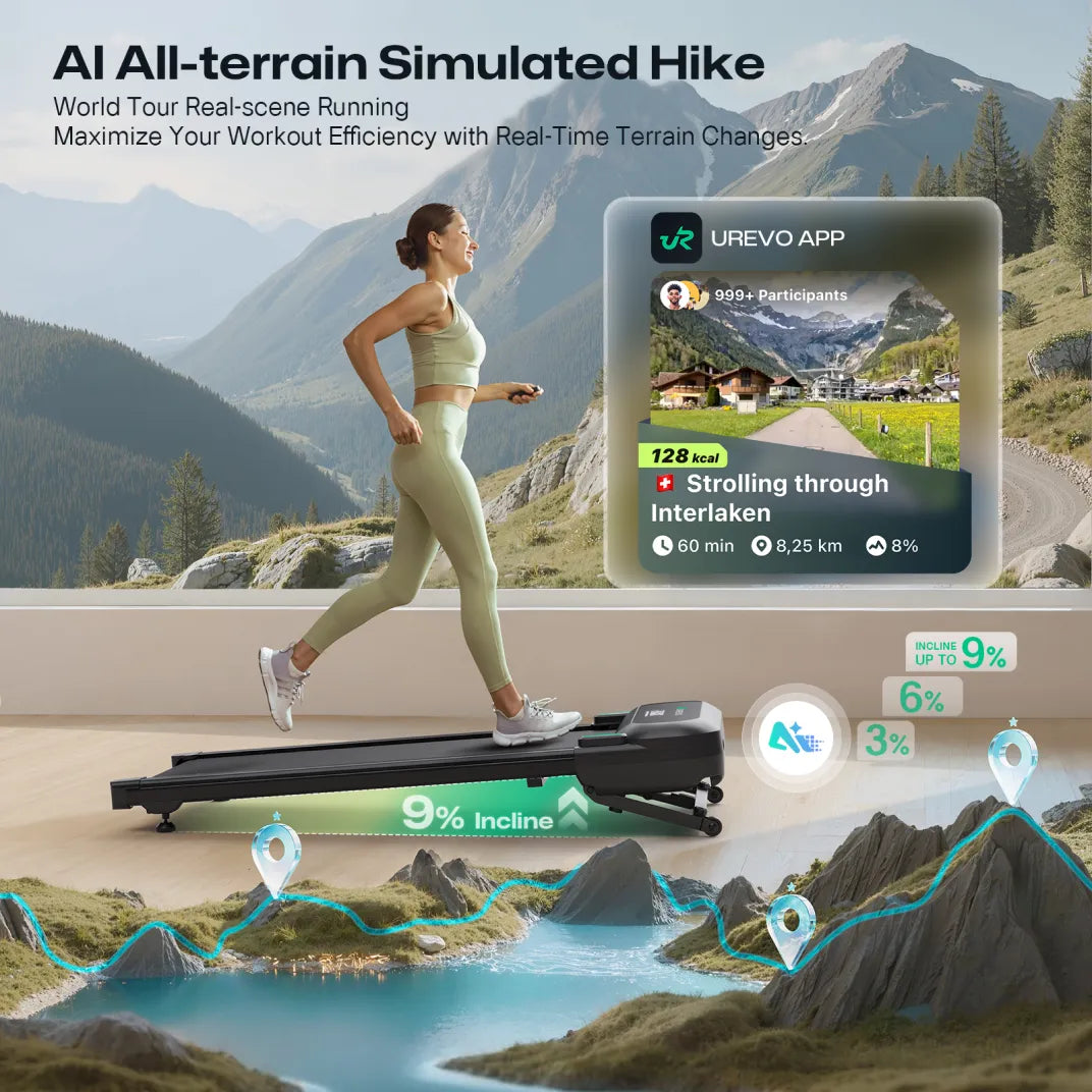 - AI Smart Fitness: The UREVO APP contains rich content including World Tour, RhythmFit, Competitive Mode, HIIT Programs and Check-in Activities, making your home exercise no longer boring.