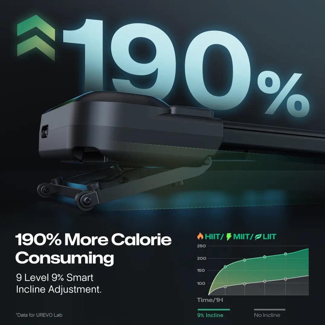 - Efficient Calorie Consuming: 9 Level 9% smart incline with a variety of HIIT programs make your home hiking more efficient and convenient, increasing the calorie-burning efficiency by 190%.