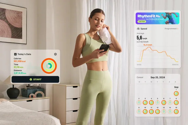 Rich contents in UREVO APP: AI-Powered RythmFit. Experience seamless rhythm transitions that sync with your speed