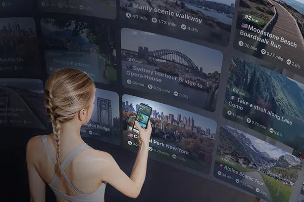 Global real-scene routes combined with AI-Powered Smart Incline & Speed Change, providing a truly immersive outdoor hiking experience at home.